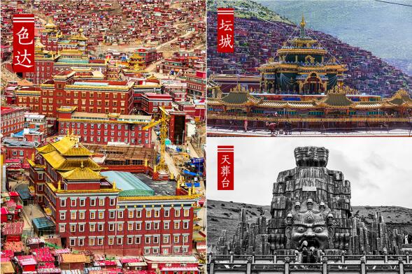 喇榮溝的一條峽谷里面,峽谷兩旁的都是密密麻麻的小紅房子,里面住著兩三萬僧眾。進(jìn)溝左側(cè)住著的是女眾,稱為覺姆;進(jìn)溝右側(cè)住著的是男眾,稱為喇嘛;峽谷中間屹立著兩座高大雄偉的經(jīng)殿,這里是僧眾上課的地方,靠近溝口的是女眾經(jīng)殿,靠里面的是男眾經(jīng)殿。進(jìn)入佛學(xué)院以后,可以去參觀他們上課的經(jīng)殿,還可以在一旁旁聽,近距離的感受藏傳佛教的魅力。大片的紅房子也一道靚麗的風(fēng)景線,可以爬到上頂,拍這壯麗的全景。在佛學(xué)院背面的上坡上,每天都要舉行一場(chǎng)盛大儀式---