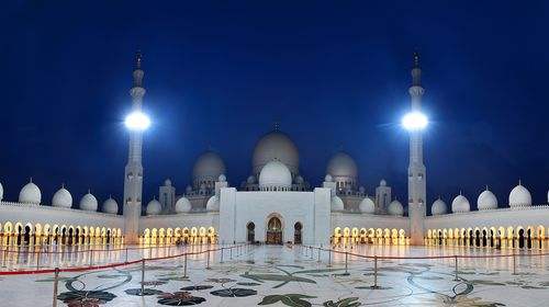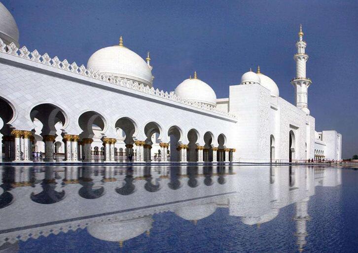 酒店自助早餐后,乘車前往中東沙漠中的花園城市阿聯(lián)酋首都【阿布扎比】(車程約1.5小時)。參觀阿聯(lián)酋最大最豪華的清真寺【扎伊德清真寺】(入內(nèi)參觀1小時),【總統(tǒng)陵】。大清真寺內(nèi)有全世界最大的手工制地毯,及耗資80萬美金的施華洛世奇水晶吊燈。整個建筑群都用希臘玉石包裹著,白色典雅。