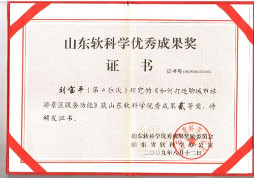 山東軟科學(xué)優(yōu)秀成果獎(jiǎng)證書 |