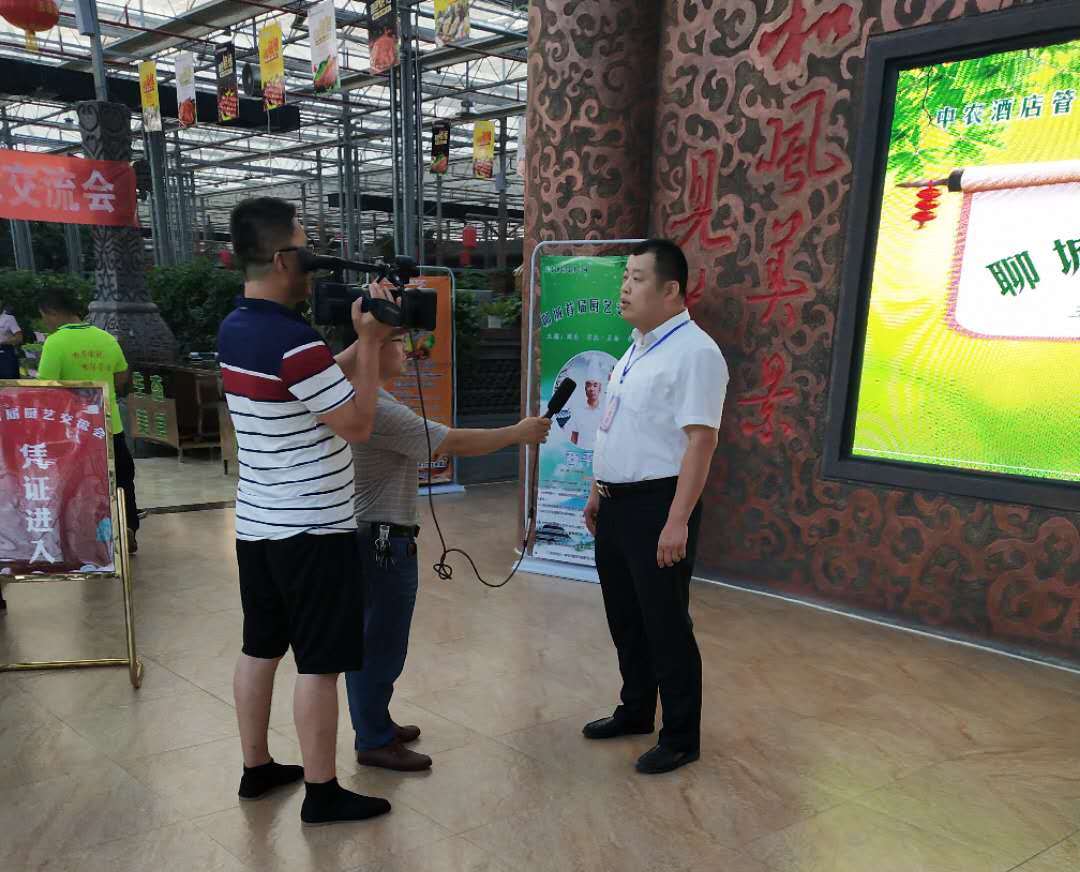 中農(nóng)酒店管理公司總經(jīng)理李傳輝、現(xiàn)代農(nóng)業(yè)生態(tài)園餐廳總廚商平勇在活動(dòng)現(xiàn)場(chǎng),接受莘縣電視臺(tái)記者專(zhuān)訪。李總向記者詳細(xì)闡述組織廚藝交流會(huì)的意義,這是聊城市同行餐飲人的集會(huì),有利于增進(jìn)互相的了解,促進(jìn)共同進(jìn)步,共創(chuàng)更加輝煌的酒店餐飲業(yè)。商廚向記者介紹了餐飲中菜品的相關(guān)情況。