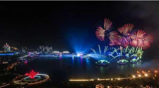 6月9日至10日,上海合作組織青島峰會在山東青島召開。這是9日晚在青島舉行的《有朋自遠(yuǎn)方來》燈光焰火藝術(shù)表演。