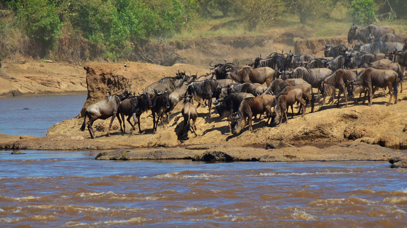 在肯尼亞可以看到最壯觀的天國之渡,因為肯尼亞境內(nèi)的馬拉河河岸很陡峭,河床也很窄,河水很急很深,場景非常壯觀。但與此同時,你也要忍受跟無數(shù)的人擁擠在一起觀看這壯觀的場景,如果想要拍照片,大量的人群會讓你很難取景。