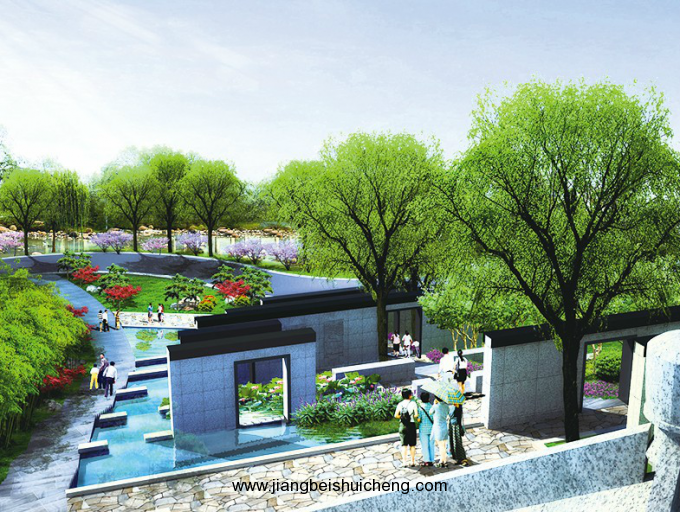 聊城眾多的河流,美麗的虎撲,形成了城中有水、水中游城、城水一體、交相輝映,不同景觀要素融為一體的獨特城市格局,黃河文化和運河文化在此交匯相融;中原龍山文化與典型龍山文并存;漕運文化、水利文化、文學(xué)藝術(shù)文化、民俗文化等在這里都有體現(xiàn),人文資源獨具特色。園區(qū)將在入口景區(qū)用一個寧靜的睡眠和對景景墻開場,象征聊城。中區(qū)由五道疊水和融入水中墻體構(gòu)成江北水城的景觀印象。園區(qū)東側(cè)最高處的上崗上,植富于野趣的樹林,形成寫意的景陽岡景觀,林中置亭,名打虎亭。在這里可以遠眺層巒疊嶂的百果山森林公園景觀,可賞自然與人工的園博園和融園景觀。