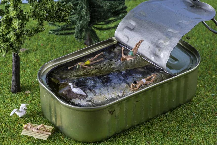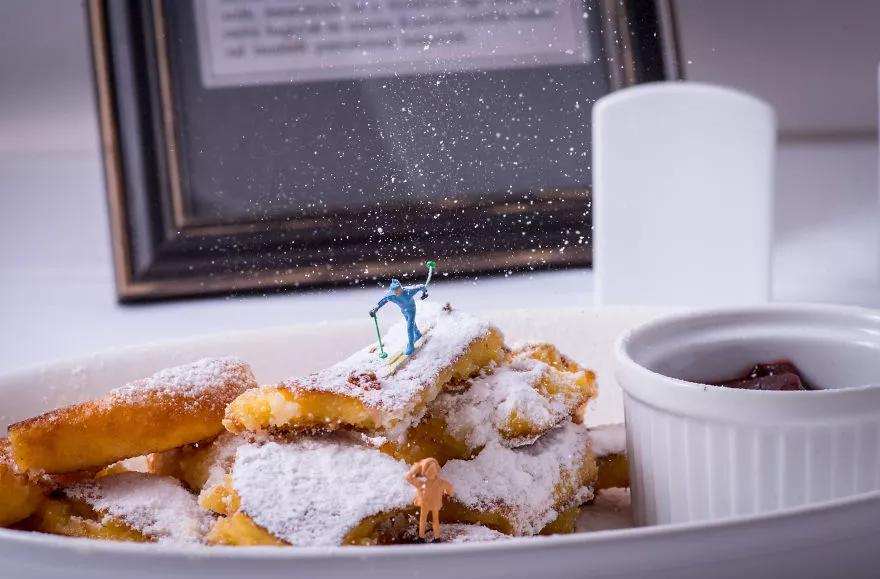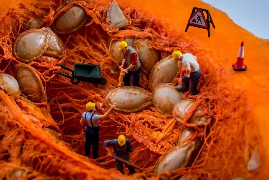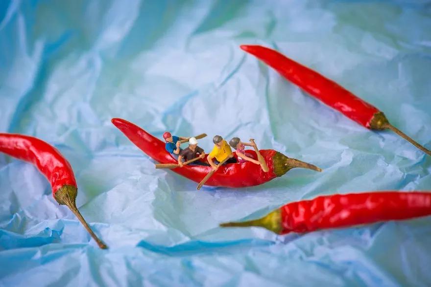 來自匈牙利布達佩斯的美食攝影師彼得近三年改變了以往的攝影風格,他利用微縮模型、食物和日常用品搭配組合,創(chuàng)造了一個名為“Tiny Wasteland”(袖珍荒原)的攝影系列。