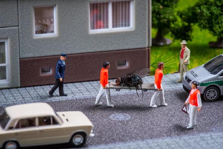 即使明明知道這些照片是“假”的,只是在用小模型在模擬現(xiàn)實生活場景,可因為攝影師奇趣無限的想象力,也會讓觀眾忍不住一張張翻下去,看看下一張又會出現(xiàn)什么意料之外的場景。