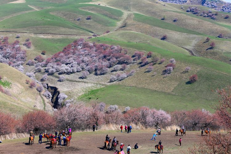吐爾根杏花溝位于新疆伊犁新源縣吐爾根鄉(xiāng)。吐爾根杏花溝是一片中世紀遺留最大的原始野杏林,集中分布于鞏乃斯河北岸,占地有3萬多畝,是新疆野杏林比較集中的地區(qū)之一。