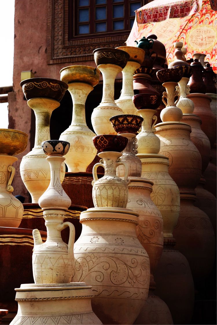 一件件具有維吾爾族風(fēng)格的陶瓷制品強(qiáng)烈吸引著我,可惜無(wú)法帶回家來(lái)。