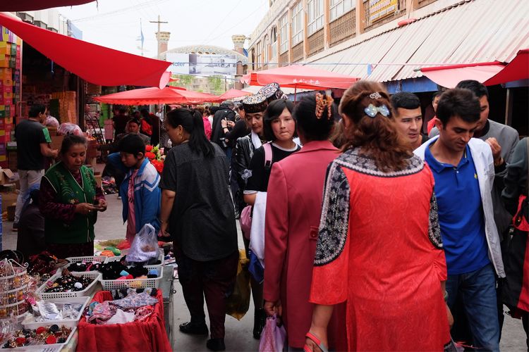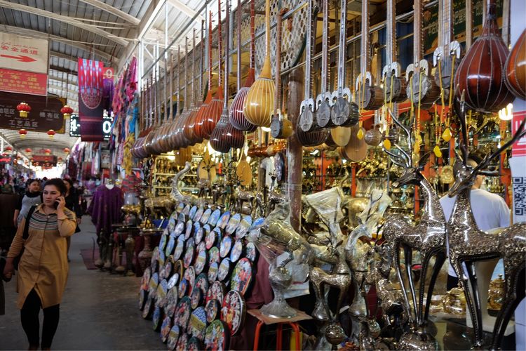喀什內(nèi)的巴扎規(guī)模巨大,各種各樣的商品琳瑯滿目,無(wú)所不有。