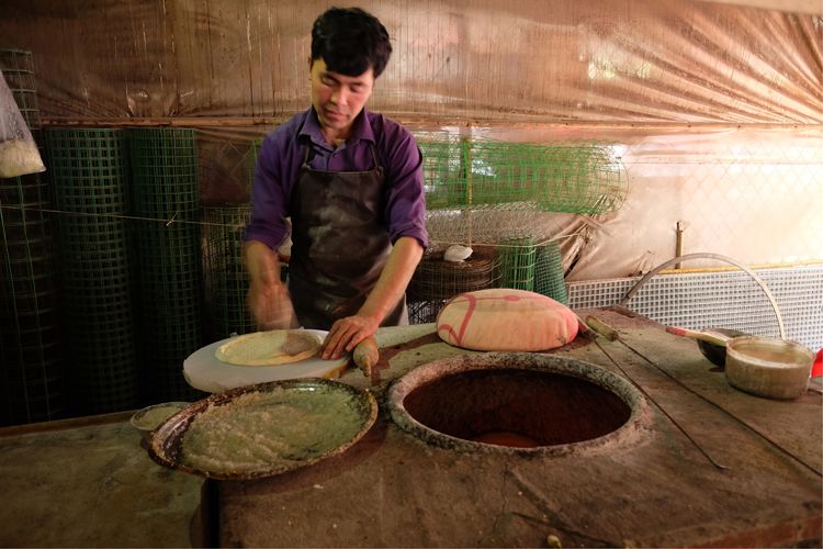 烤馕是喀什維吾爾族最主要的面食,也是維吾爾族飲食文化中別具特色的一種食品,喀什人民常說(shuō)“可以一日無(wú)菜,但決不可以一日無(wú)馕。”
