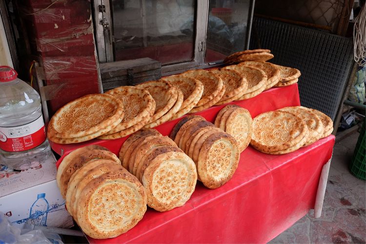 馕含水分少,久儲(chǔ)不壞,便于攜帶,適宜于喀什干燥的氣候,加之烤馕制作精細(xì),用料講究,吃起來(lái)香酥可口,人人都喜歡烤馕就不足為怪了。