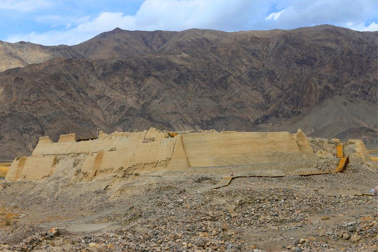 石頭城遺址 海拔3100米,為晉唐時(shí)期的城墻、城門(mén)、寺院,居住遺址和清代官署等遺跡。城墻用石塊或土坯砌筑。城墻內(nèi)有一塊石碑刻有唐僧講經(jīng)處字樣。