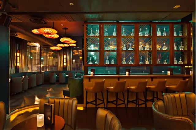 由英國著名設(shè)計事務(wù)所Design research studio設(shè)計的Craft吧最明顯的符號是英國Tom Dixon的家具,富有個性的吧凳與金屬的吧臺飾面就是最佳搭配,天花的藝術(shù)噴繪為空間融入濃厚的時代氣息。