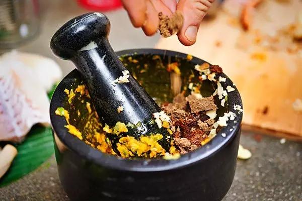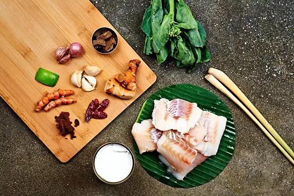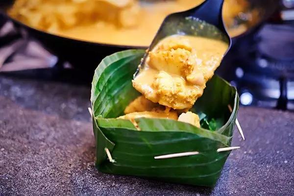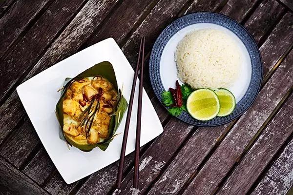 這道菜原本是古高棉人用來慶祝水節(jié)的美食,將肉類(魚、雞、豬、牛肉)裹在香蕉葉中烘烤,再加入椰汁、椰漿、高棉咖喱醬、檸檬葉和當(dāng)?shù)厥卟耍献酪院蟛粌H顏值高,椰香魚香葉香渾然一體,口感綿密有點(diǎn)像咖喱。