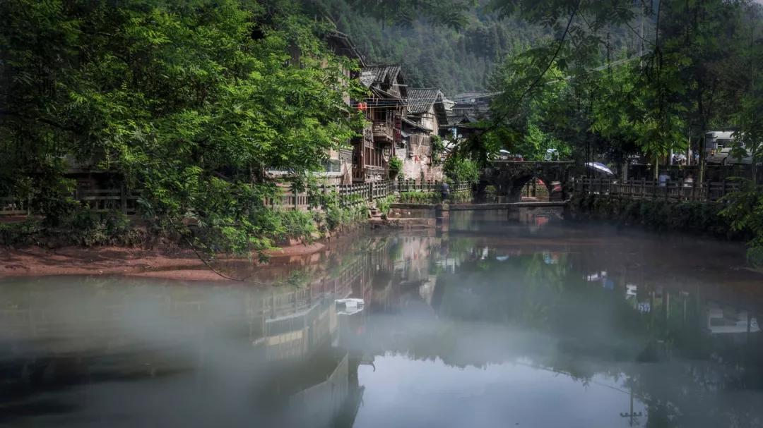 古鎮(zhèn)依山傍水,有著濃濃的田園風(fēng)光,至今還保留著許多明清時(shí)期的吊腳樓式建筑,街道主要是呈“井”字形布局,寓意“井中有水,水火不容”,以水制火,祈福古鎮(zhèn)平安。