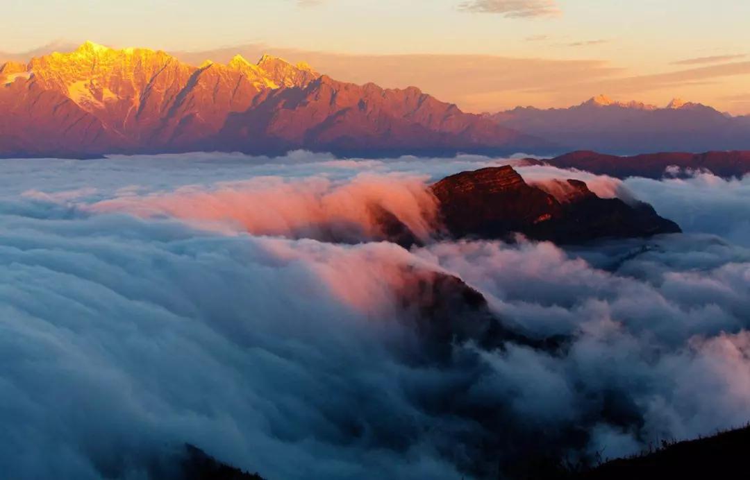 牛背山有六絕,即云海,日出,夕陽(yáng),貢嘎雪山,佛光,星軌,站在山頂你不僅能把天府之國(guó)的名山峻嶺盡收眼底,運(yùn)氣好的話看到佛光,日照金山。