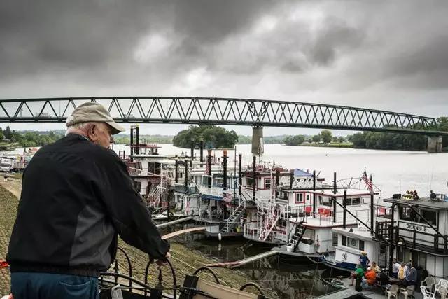 照片中的老人正在回憶自己曾在河船上工作的那段歲月。