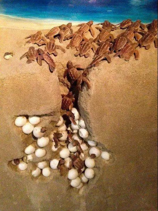 陽光燦爛的天氣,小海龜紛紛破殼而出,成群結(jié)隊(duì)的爬向大海。