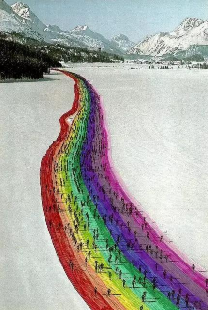 這條在雪后開辟的彩虹大道上,成千上萬的馬拉松參賽者在一邊跑步一邊欣賞風(fēng)景。