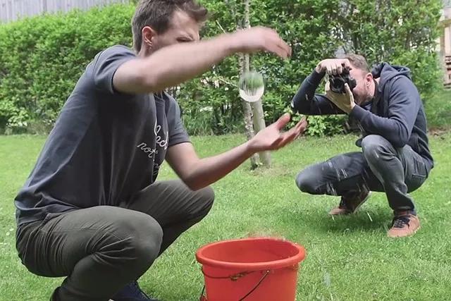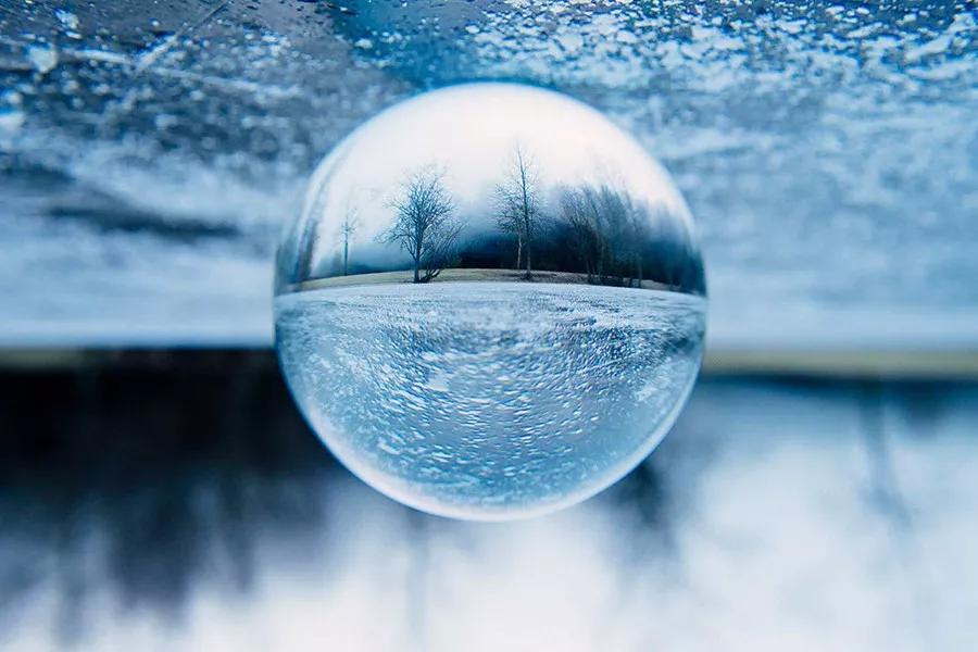 不斷調(diào)整拍攝角度和球體位置,你會(huì)發(fā)現(xiàn)球內(nèi)的分界線位置也會(huì)不斷發(fā)生變化。你需要選擇一個(gè)角度,使球體倒影和現(xiàn)實(shí)中的分界線重合。