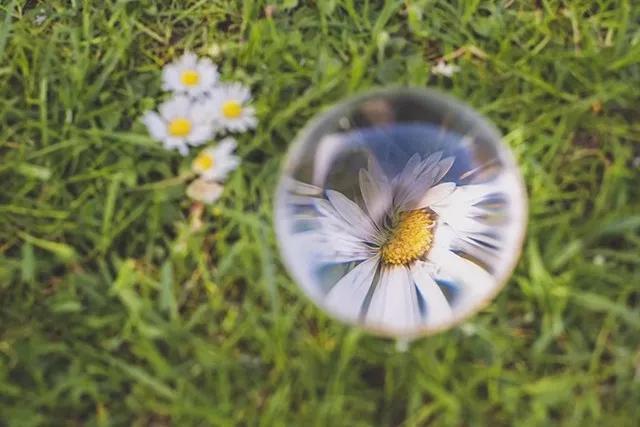 使用水晶球進(jìn)行聚焦,不僅可以實(shí)現(xiàn)放大,還可以利用畸變來(lái)使紋理產(chǎn)生一定的變化感;再利用小/清晰虛像與大/模糊實(shí)景的對(duì)比,會(huì)讓作品顯得更有趣。