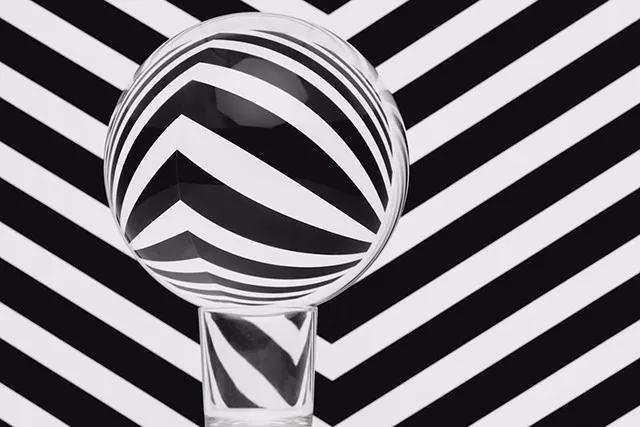 你也可以“定制”背景,用電腦設(shè)計(jì)一些平行/交錯(cuò)/粗細(xì)變化的線條組,打印出來(lái)后作為背景,放入水晶球進(jìn)行拍攝。