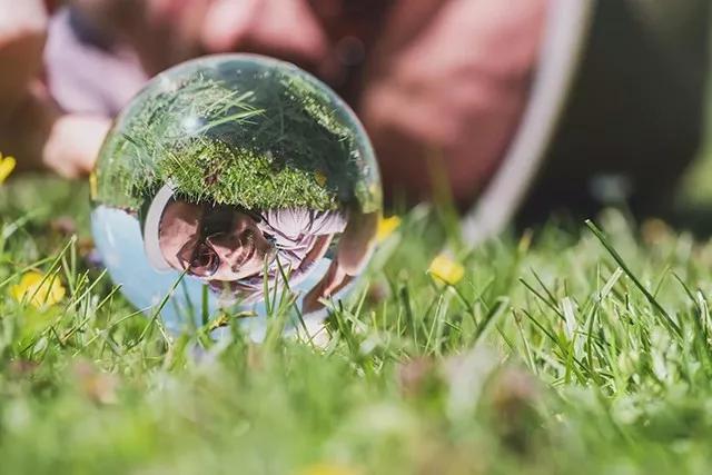 水晶球是創(chuàng)意攝影的一個(gè)常用道具,常被用來(lái)拍攝風(fēng)光和人像,讓球體倒映出周邊景物,形成虛實(shí)結(jié)合的效果,為平凡的場(chǎng)景添加了深度: