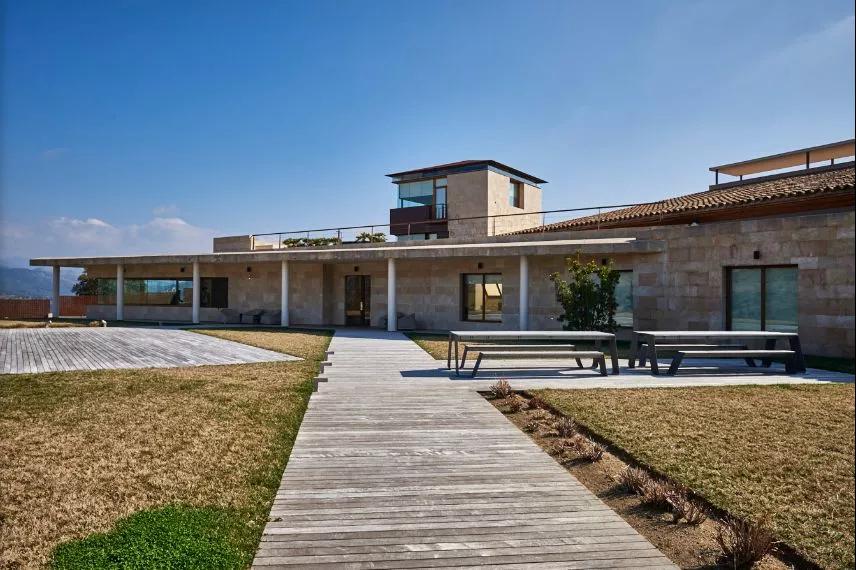 酒莊卻完全是現(xiàn)代的,在一群古老的房子里格外顯眼。