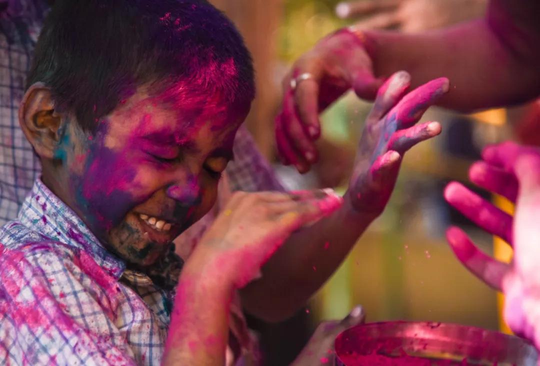 2019 年3月19 日,在印度孟買一所學校,孩子們慶祝即將到來的灑紅節(jié)。