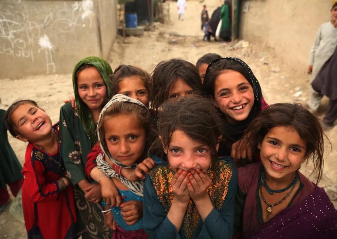 2019 年6月20日,在阿富汗喀布爾一處難民營內(nèi),幾名兒童面對鏡頭露出笑容。聯(lián)合國難民署6月19日發(fā)布的最新報告顯示,截至2018 年年底,全球流離失所者人數(shù)達到 7080 萬,是 20 年前的 20 倍,創(chuàng)近 70 年來最高紀錄。