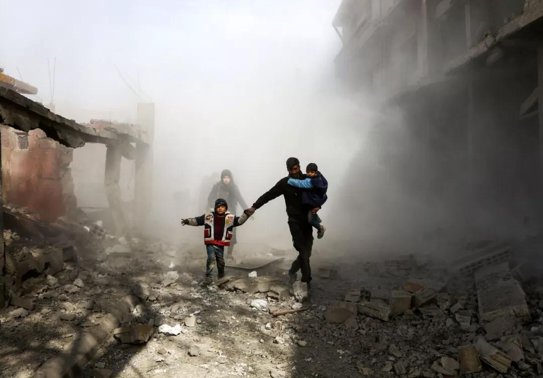 2018 年2月8日,敘利亞在首都大馬士革附近,平民逃離被反政府武裝控制的地區(qū)。