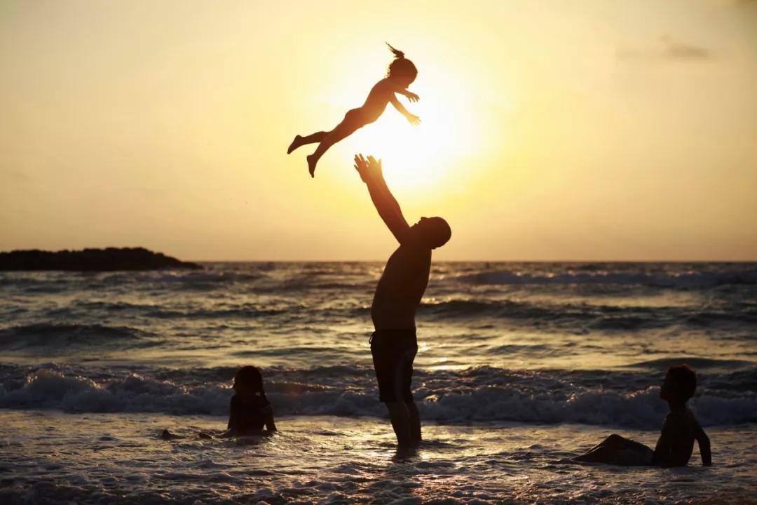 2017 年6月26日,在以色列的阿什克隆,一名男子與孩子在地中海岸邊玩耍。