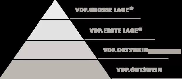 VDP酒莊使用著一套與德國(guó)官方葡萄酒分級(jí)同時(shí)存在,卻又完全獨(dú)立的分級(jí)系統(tǒng)。眾所周知,1971年頒布的德國(guó)官方葡萄酒分級(jí)以葡萄成熟度為標(biāo)準(zhǔn),但這個(gè)標(biāo)準(zhǔn)過于片面,難以區(qū)分酒的真實(shí)品質(zhì)。為了解決這個(gè)問題,VDP建立了聯(lián)盟內(nèi)部的分級(jí)制度,最新的分級(jí)制度更新于2012年,以勃艮第的風(fēng)土理念為出發(fā)點(diǎn):