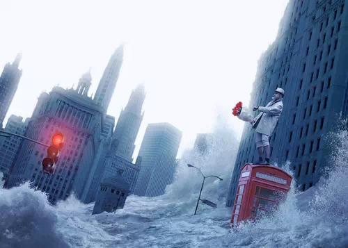 為什么這樣說(shuō)?因?yàn)楸绕鹚降牡仄骄€,略帶傾斜的地平線會(huì)更加具有動(dòng)感,比如下面這張海報(bào)圖(不是真實(shí)拍出來(lái)的,只是拿來(lái)做個(gè)例子),它沒有一個(gè)明確的水平線,但是根據(jù)建筑物來(lái)參考,很明顯它是傾斜的,感覺人物站不穩(wěn)隨時(shí)都要倒下去,這樣就營(yíng)造了一種緊張的氛圍,有助于表達(dá)情緒。