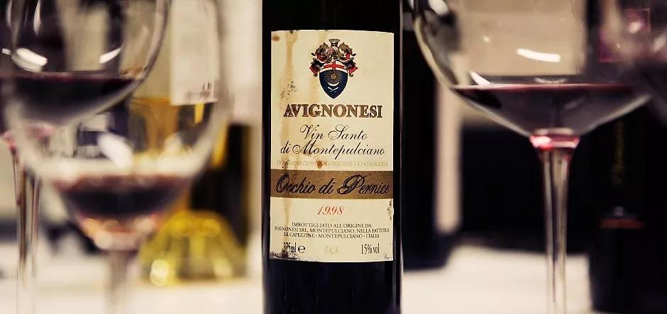 最頂級的桑嬌維塞子產(chǎn)區(qū)是Brunello di Montalcino,但拿到最高分的卻不在這里,而是“圣酒”(Vin Santo)——一種用風干葡萄釀的甜酒。因為紅色通透的酒色,被當?shù)厝朔Q為Occhio di Pernice(鷓鴣之眼),因為鷓鴣的眼睛便是這般紅色。