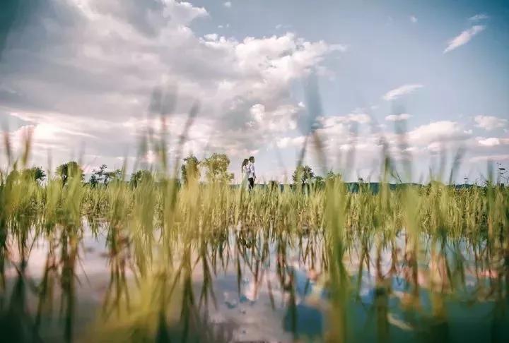 攝影講究的就是創(chuàng)意。之前看到過一張婚紗攝影照,這位攝影師使用的就是低角度拍攝,將水面作為前景,并讓鏡頭與水面保持一致,保留大場景的同時(shí),卻也很好地突出了主體。