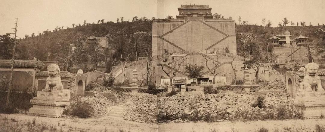 托馬斯·查爾德作品《圓明園西洋樓諧奇趣東翼》,蛋白照片,20×26 厘米,1877,原作由 Laura Huang 收藏