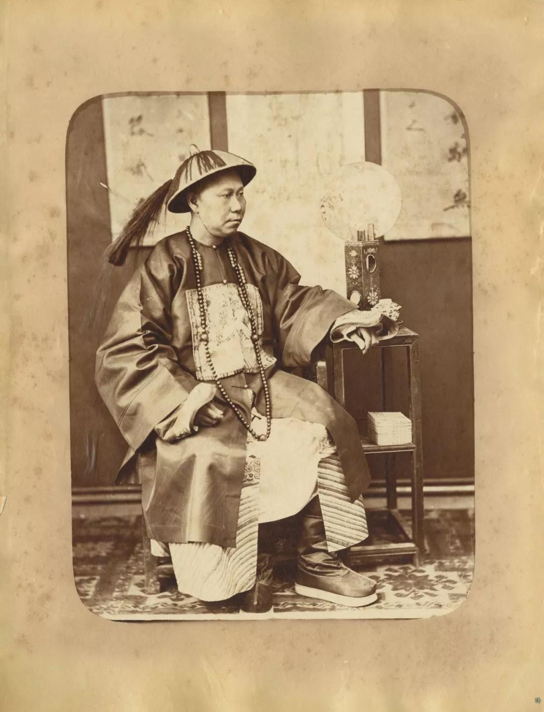 梁時泰是一名廣東攝影師,1870 年代在香港經(jīng)營照相館。1879 年,他趁美國卸任總統(tǒng)格蘭特訪華時,拍攝了一些時任直隸總督李鴻章的單人像,并對很多照片進行了精心的手工上色,表現(xiàn)出中國民間畫和文人畫對攝影的影響。
