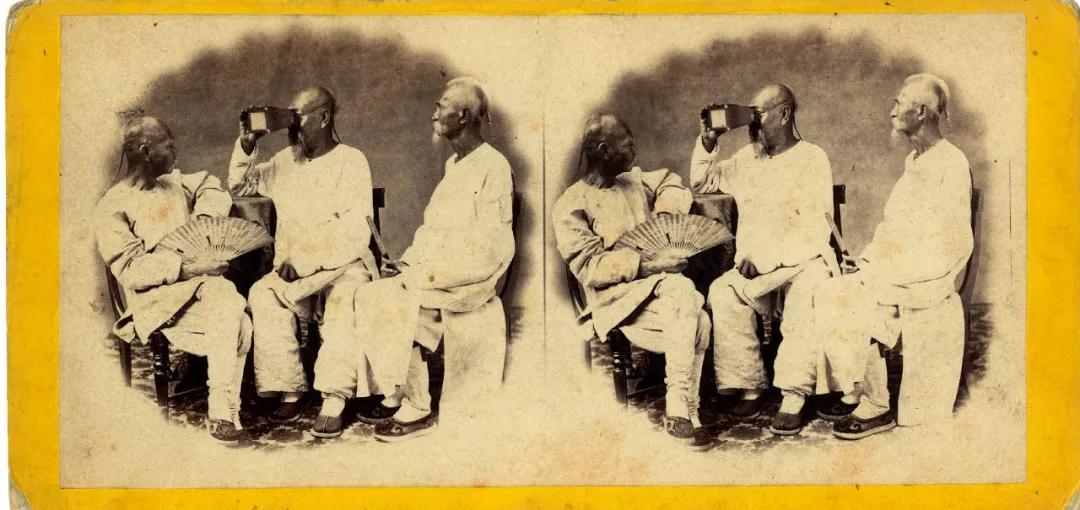 彌爾頓·米勒作品《看立體鏡的中國人》,蛋白照片,9×18 厘米,1861~1863,原作由影易時代收藏