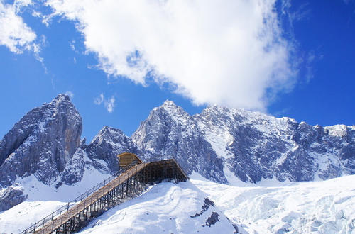 乘坐【冰川大索道】(如遇不可抗拒因素,大索道可調(diào)整為小索道。①遇大風(fēng)、大雪等天氣,索道停運(yùn);②索道公司定期維修停運(yùn);③黃金周國慶和春節(jié),7、8月旺季,索道公司限票部分游客上不了索道)登臨雪峰,飽覽姿態(tài)萬千的雪域風(fēng)光,抒發(fā)一覽眾山小的凌云壯志;萬年不化的冰川近在眼前,云南橫斷山脈的秀美,一覽無余;