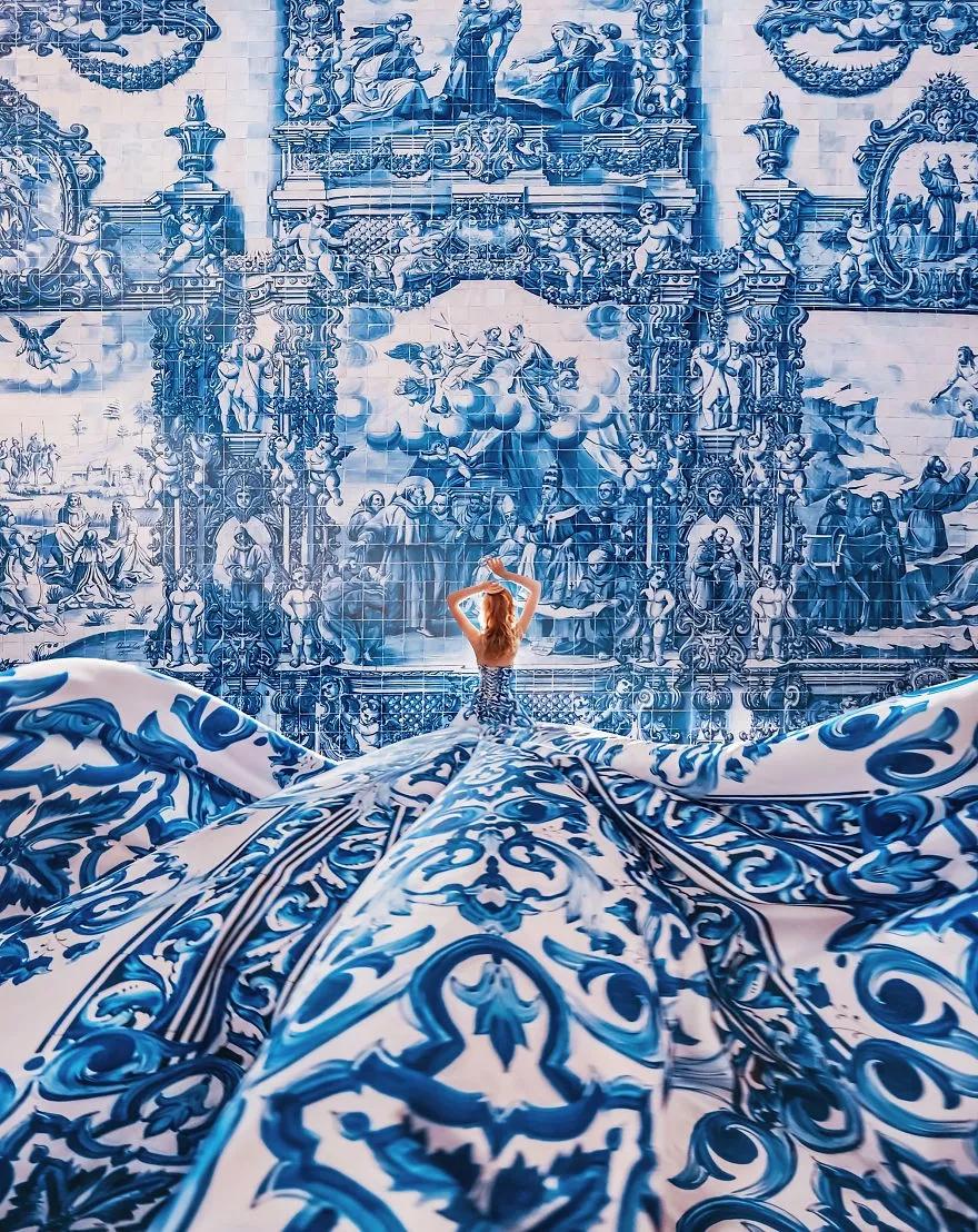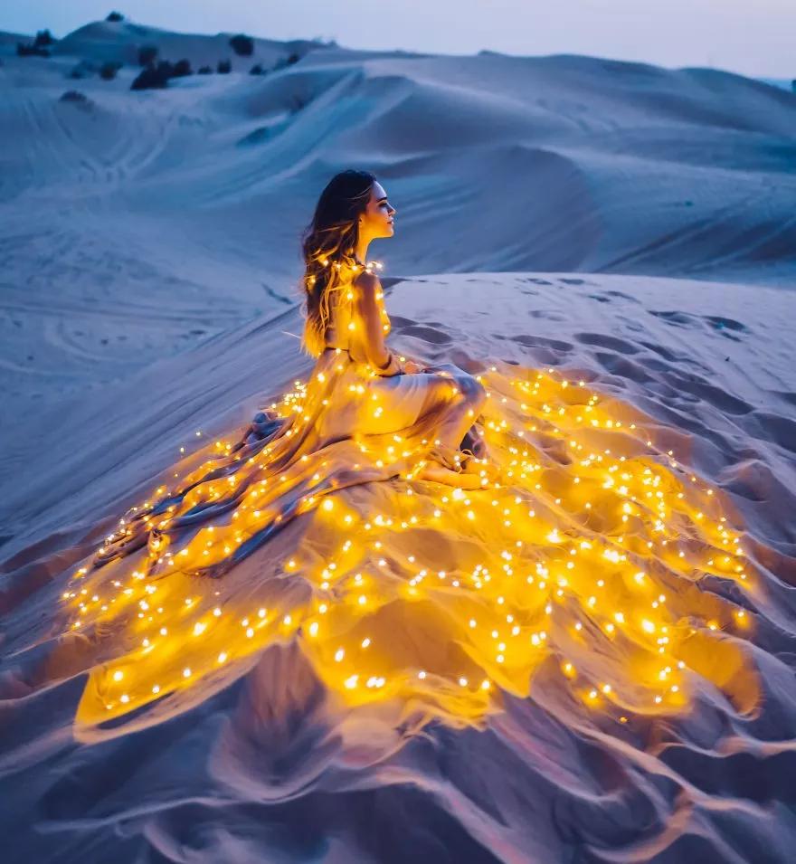 嘗試著打扮并拍攝穿著華麗裙裾、