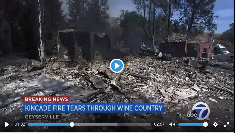 本次山火被稱(chēng)為:Kincade,于美國(guó)當(dāng)?shù)貢r(shí)間10月23日夜晚發(fā)生,火勢(shì)猛烈,索多瑪縣北部上千名居民緊急撤離。至24日下午,火勢(shì)持續(xù)蔓延,Geyserville縣居民被迫疏散。加州州立大學(xué)、圣貝納迪諾市也因?yàn)橥k姾痛蠡鹪?4日停課。