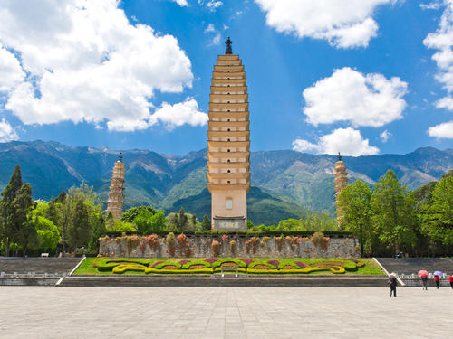 自用早餐后,乘車前往以風(fēng)、花、雪、月駐著稱的大理,(約180公里,行車約3H)游覽坐落于青山綠水,藍(lán)天白云間的[崇圣寺三塔],崇圣寺三塔為國(guó)家首批公布的全國(guó)文物重點(diǎn)保護(hù)單位,是大理的標(biāo)準(zhǔn)和象征,游覽期間,可真正讓你體會(huì)到大理“妙香佛國(guó)”的悠遠(yuǎn)意味(游覽時(shí)間90分鐘左右,不含景區(qū)電瓶車,乘坐自理);