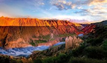 紅山大峽谷,別稱安集海大峽谷,位于沙灣縣安集海鎮(zhèn)以西的天山北坡,發(fā)源于天山山脈。安集海大峽谷由紅、黃、藍(lán)、綠、褐和紫色的砂石形成斷層,經(jīng)歷上萬年的風(fēng)雨侵蝕和水流沖刷,大自然的鬼斧神工,就造就出一條色彩多變的幽深巨谷,層層褶皺卓顯出無比的蒼勁和壯麗。經(jīng)過長(zhǎng)年沖刷,在通古特附近沖出天山峽谷,在天山北坡下形成了規(guī)模宏大的沖擊扇,河谷沖擊扇規(guī)模宏大,以傘形向北張開,甚稱地質(zhì)奇觀。