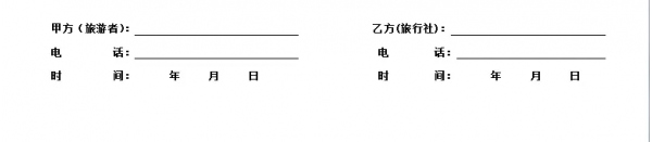 本協(xié)議一式二份,雙方各執(zhí)一份,受組團(tuán)社及地接社委托該團(tuán)導(dǎo)游為乙方授權(quán)簽字代表,甲方為旅游者本人(18周歲以下未成年人需監(jiān)護(hù)人簽名)。雙方同意本協(xié)議以雙方簽字即生效。