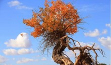 胡楊有“生而一千年不死,死而一千年不倒,倒而一千年不朽”的說法,被世人稱為英雄樹,如果說我們昨日見到的怪樹林是胡楊林死后化作的雕塑,那么我們今日看到的額濟(jì)納胡楊林便是正當(dāng)壯年生氣彭發(fā)的藝術(shù)品。千姿百態(tài)的胡楊遍布在沙漠中,大家可以漫步于輝煌的金秋胡楊林,用鏡頭記錄這中國(guó)最美的秋景;或者去找尋領(lǐng)隊(duì)所說的一樹三葉的神奇景象——“幼樹葉如針?biāo)屏肌妖g樹葉酷似白樺、老年樹葉橢圓”,胡楊、藍(lán)天、來自大漠腹地的風(fēng)聲襲來之時(shí),胡楊林便泛起黃澄澄的層層漣漪,顯盡大西北秋冬那紅盛翠減的獨(dú)有風(fēng)情。張藝謀的大片《英雄》中張曼玉與章子怡身著紅衣在這漫天的金色胡楊中打斗,踱步胡楊林,身臨其境,感受大熒屏收錄過的景色之美。