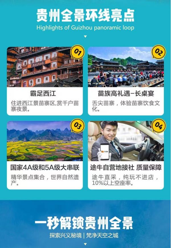 1.小交通:景區(qū)內(nèi)用車(黃果樹景區(qū)觀光車50元/人+保險(xiǎn)10元/人:荔波大小七孔電瓶車40元/人+10元保險(xiǎn):西江千戶苗寨景區(qū)電瓶車20元/人+保險(xiǎn)10元/人:夢(mèng)凈山索道140/人+觀光車20/人+保險(xiǎn)10/人,為景區(qū)必須乘坐項(xiàng)目。馬嶺河電梯40元/人,黃果樹往返扶梯50元/人,大七孔游船單程20元/人,鴛鴦湖游船30元/人以及景區(qū)內(nèi)其他自費(fèi)項(xiàng)目可根據(jù)自身需要選擇!