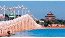 早餐后游覽【山陜會館】、【傅斯年紀(jì)念館】、【湖濱公園】、觀世紀(jì)拱橋——【二十一孔橋】、【騰龍廣場】、【船游東昌湖】,游覽由清華大學(xué)設(shè)計,于2003年5月落成,建筑風(fēng)格新穎別致,融匯了東西方的文化神韻,是建筑與藝術(shù)的結(jié)晶【水城明珠大劇場】
