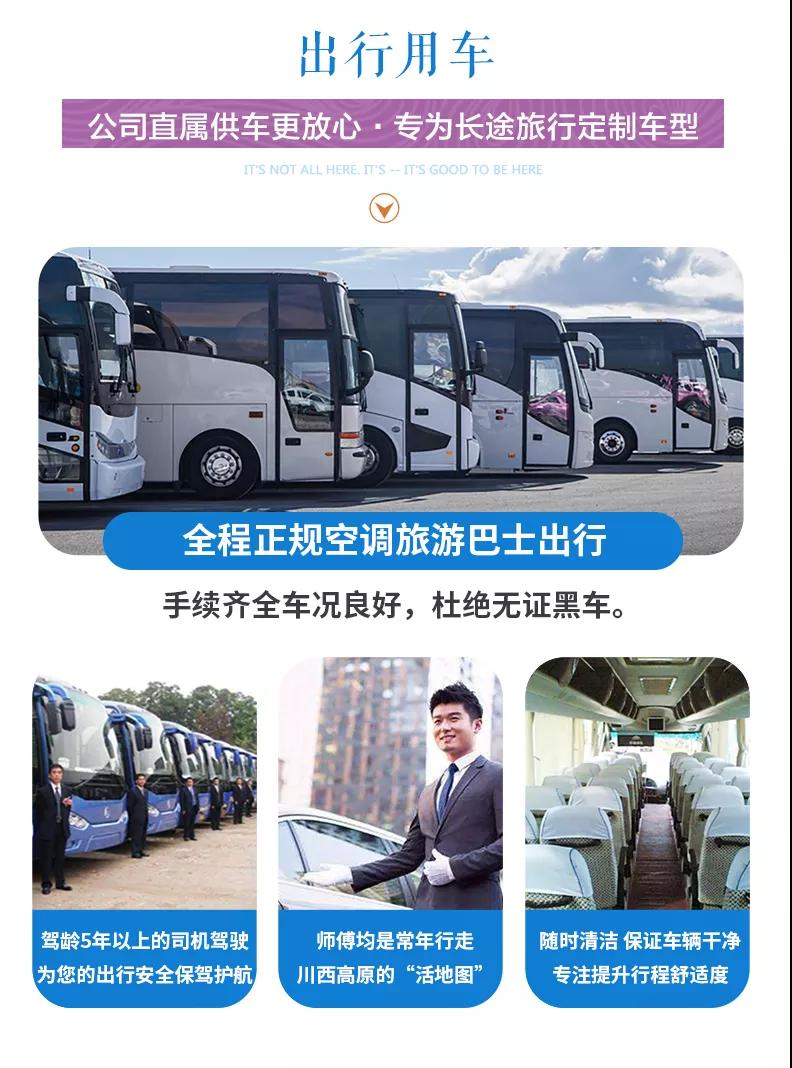 1、關(guān)于車輛交通:目前四川旅游市場(chǎng)8座以下車輛無(wú)法辦理旅游牌照,請(qǐng)游客知悉,以此理由提起的投訴我方拒不受理,望您諒解。