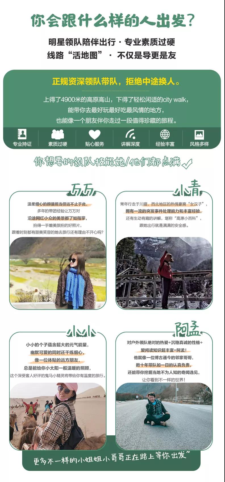導(dǎo)服:精品小團(tuán)8人以上(不包含8人)提供正規(guī)持證專(zhuān)業(yè)導(dǎo)游服務(wù);2-10人VIP小團(tuán)由經(jīng)驗(yàn)豐富的司機(jī)提供向?qū)Х?wù),無(wú)單獨(dú)導(dǎo)游服務(wù)。