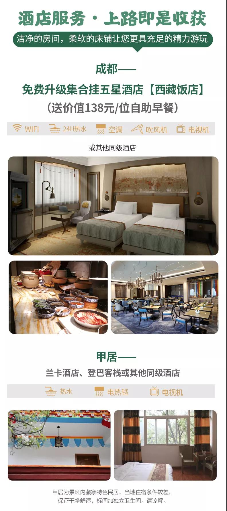 住宿:6晚當(dāng)?shù)鼐肪频觌p人標(biāo)間+免費(fèi)升級(jí)一晚成都集合掛五酒店雙人標(biāo)間,確保酒店干凈衛(wèi)生,溫馨舒適。因沿途高原藏區(qū)條件有限,如果酒店設(shè)施沒(méi)有達(dá)到您的期望,敬請(qǐng)諒解。參考酒店如下: